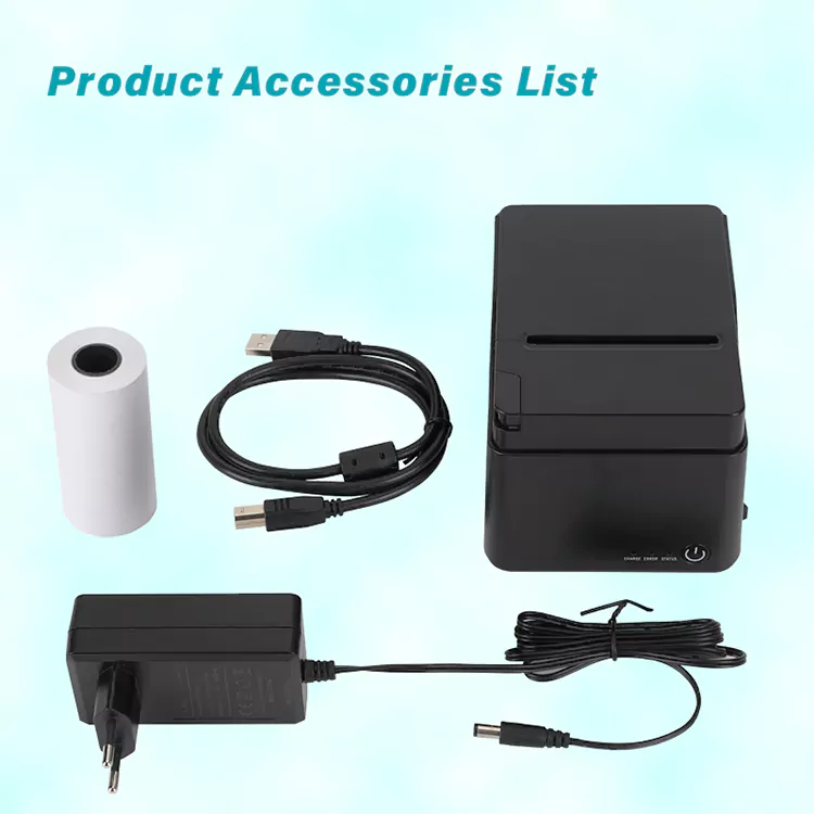 1. Пакет укључује: 80мм штампач рачуна, ролну папира, усб кабл, приручнике, адаптер.
