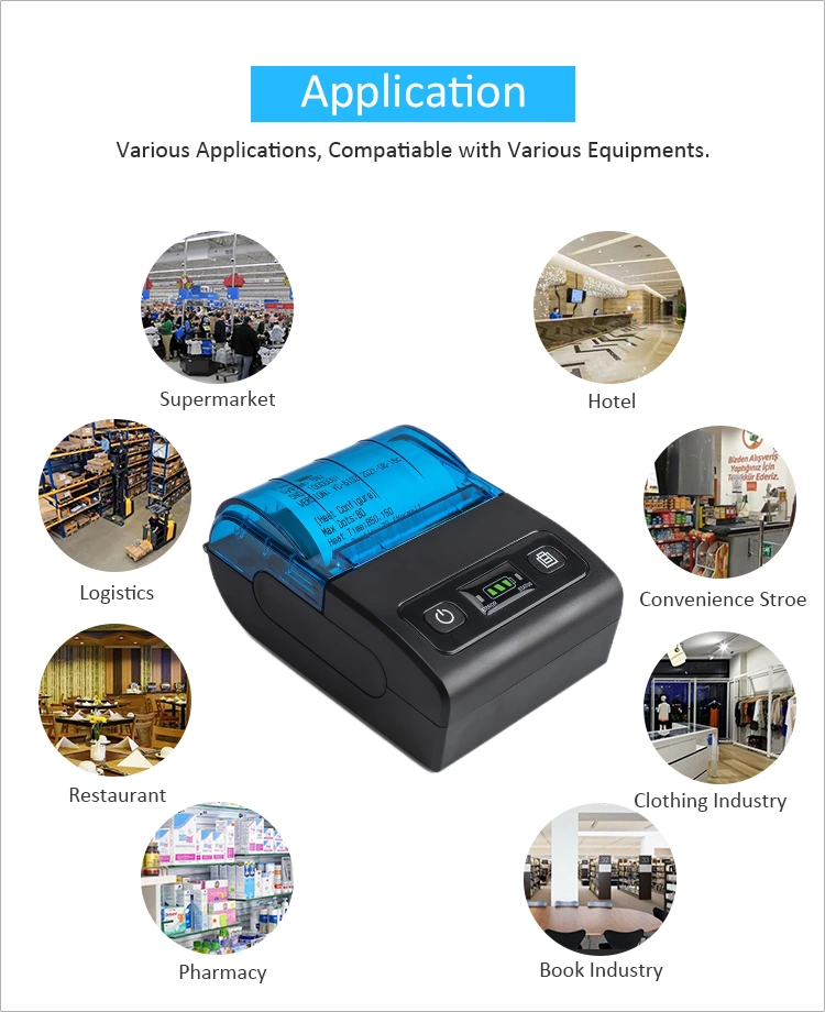 Мини преносиви термални штампачи имају огромну потражњу на тржишту, посебно у малопродаји, угоститељству, експресној испоруци и другим услужним делатностима. На пример, ова врста штампача нуди трговцима и добављачима услуга погодно и ефикасно решење за плаћање. Без потребе за сложеним жичним везама, Блуетоотх технологија омогућава брзо и лако упаривање са паметним телефонима, таблетима или мобилним уређајима, чинећи процес плаћања бржим и практичнијим. Са преносивим и лаганим дизајном, погодан је за сценарије мобилних продајних места или сервиса.